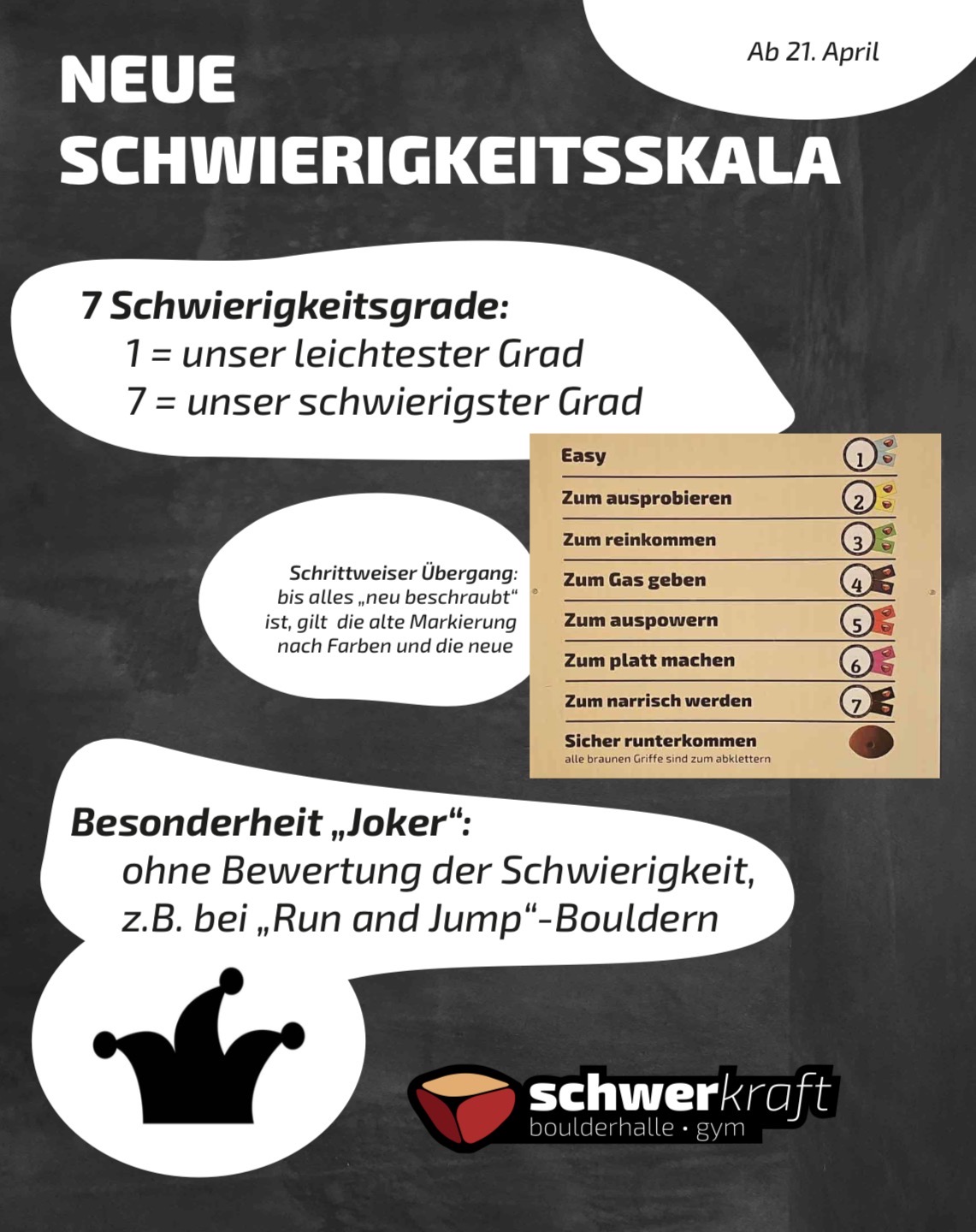 Statt der bisherigen Farbbewertung (angelehnt an die Fontainebleau-Skala) führen wir schrittweise ein Zahlensystem von 1–7 ein